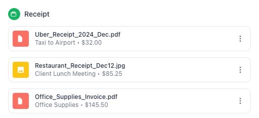 Capture, store, and organize receipts digitally with easy upload and attachment features that ensure complete documentation for compliance and audit trails.