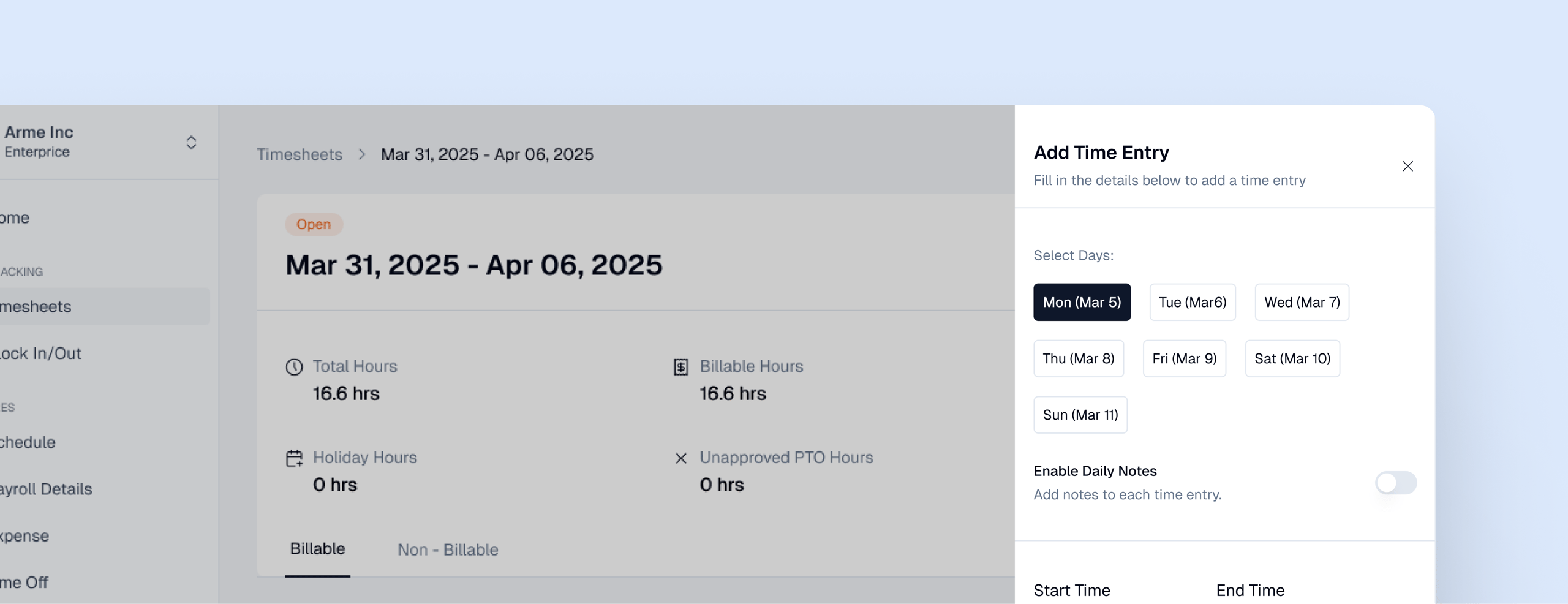Employee edits entry and resubmits instantly