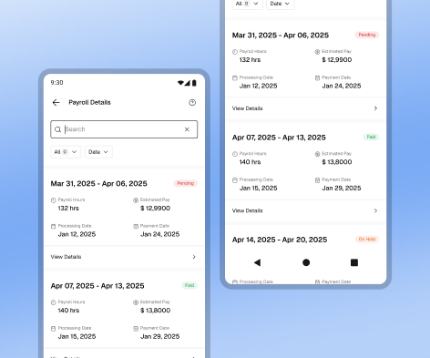Fill and submit timesheets from iOS or Android—same workflow, same approval chain