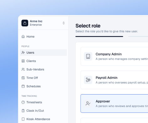 Invite users as Company Admin, Payroll Admin, Approver, or Employee