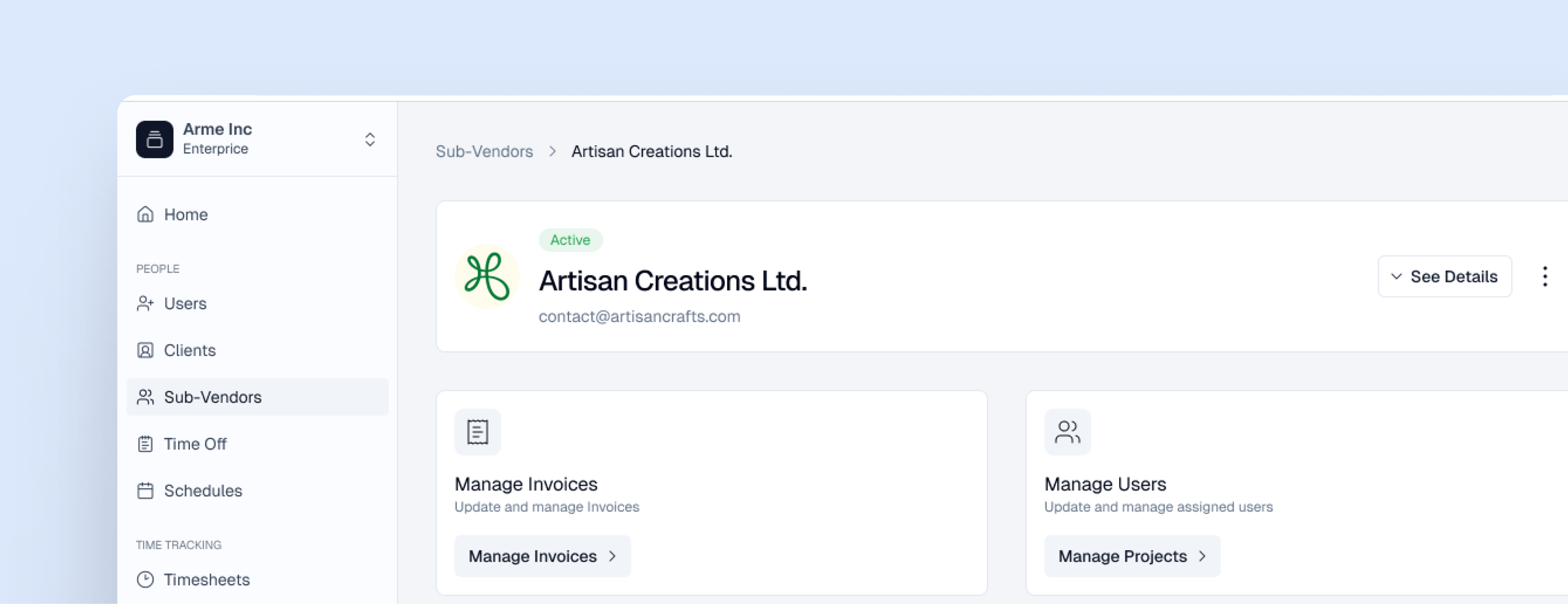 Approved C2C hours generate vendor invoices automatically on your schedule